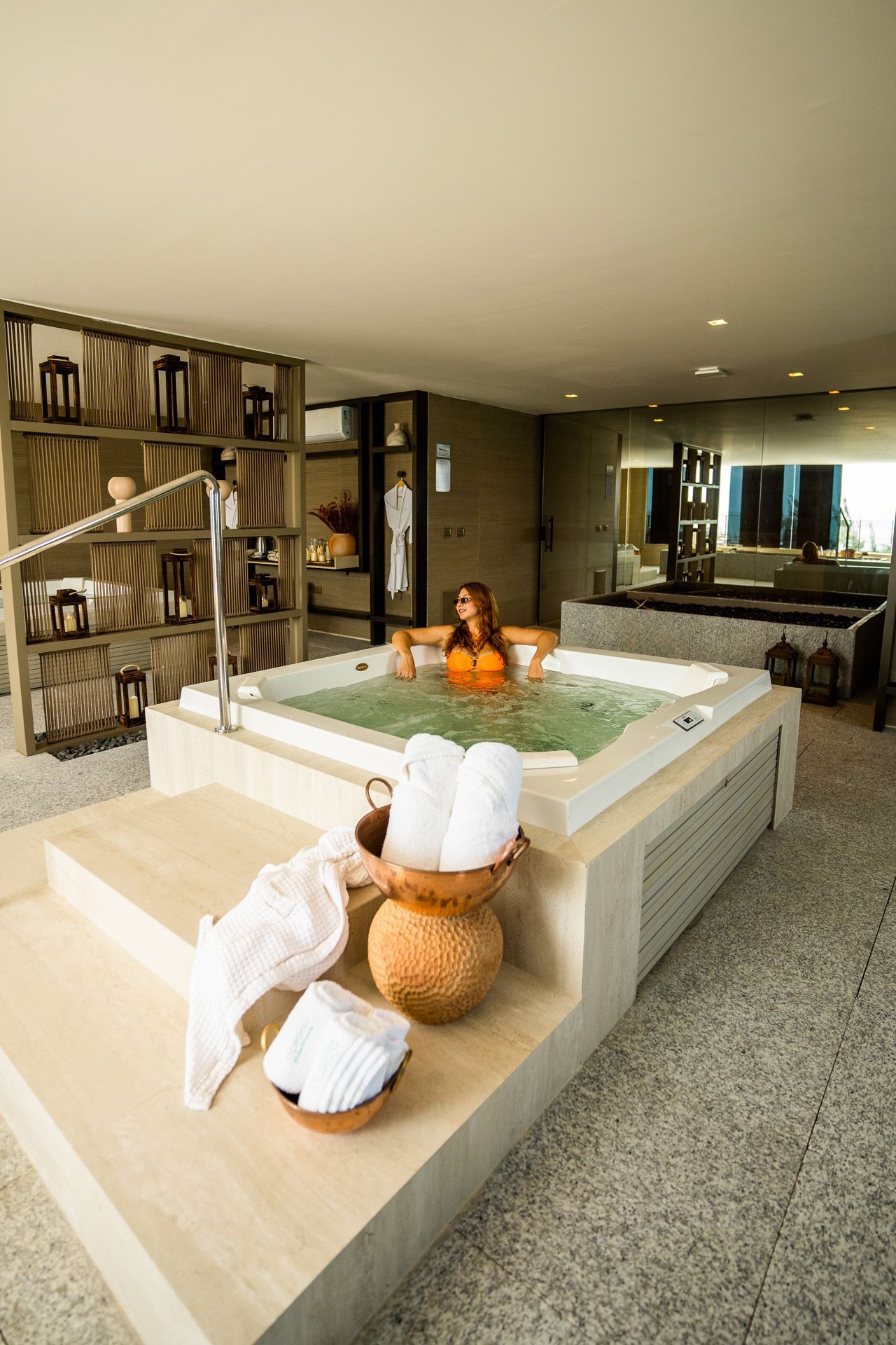A sauna com Jacuzzi pode ser reservada sem custo adicional para que essa experiência seja única.